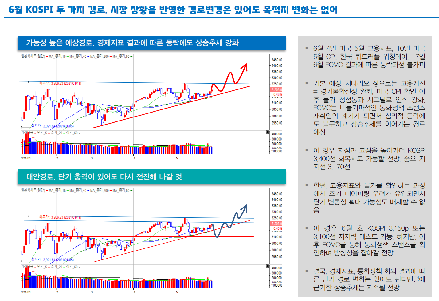 가능성 높은 예상경로의 흐름대로 상승하고 있는 추세다. 6월 흐름은 3,200초반에서 크게 벗어나지 않았다.