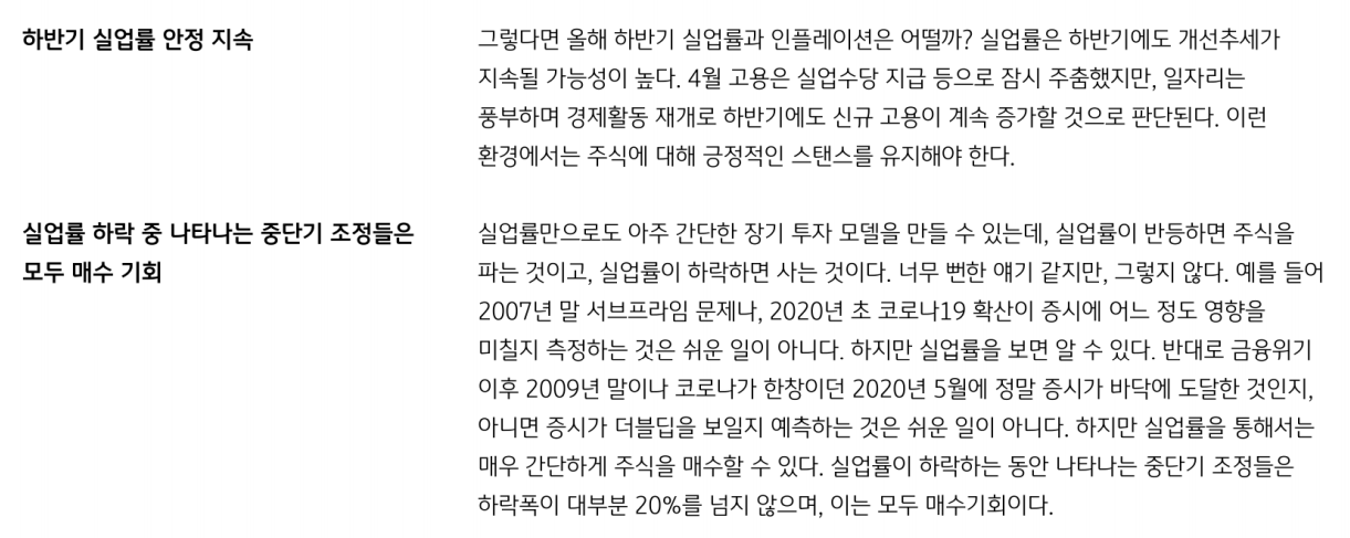 실업률 하락중 나타나는 단기 조정은 매수 기회라는 부분을 기억하고 싶어서 캡쳐했다.